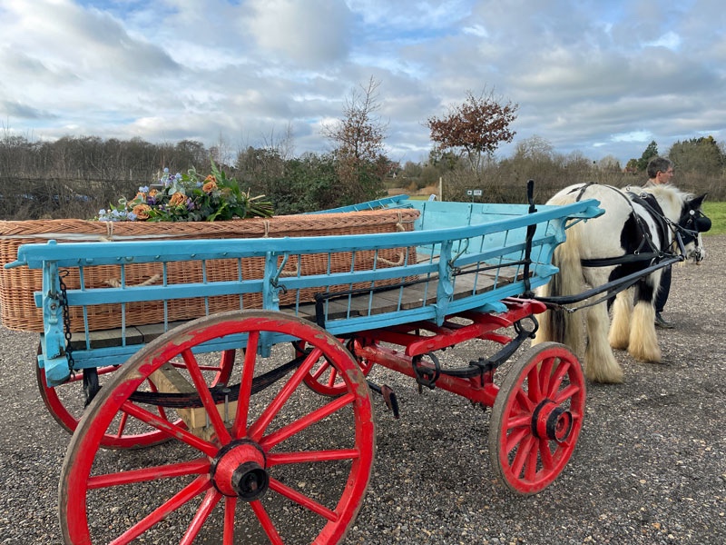 As is so often the case when creative people first encounter the traditional world of funerals, they had an experience that left them feeling profoundly unhappy with what they describe as ‘a bad funeral’. When a close friend died, their funeral was impersonal and formulaic – there was no sense of the person whose life had ended, and this left both Jacqui and Nick feeling let down. The death of a beloved parent some time later put them into the position of having to arrange a funeral themselves, and they both felt instinctively that neither a traditional style funeral nor a direct cremation would be the right thing for them.